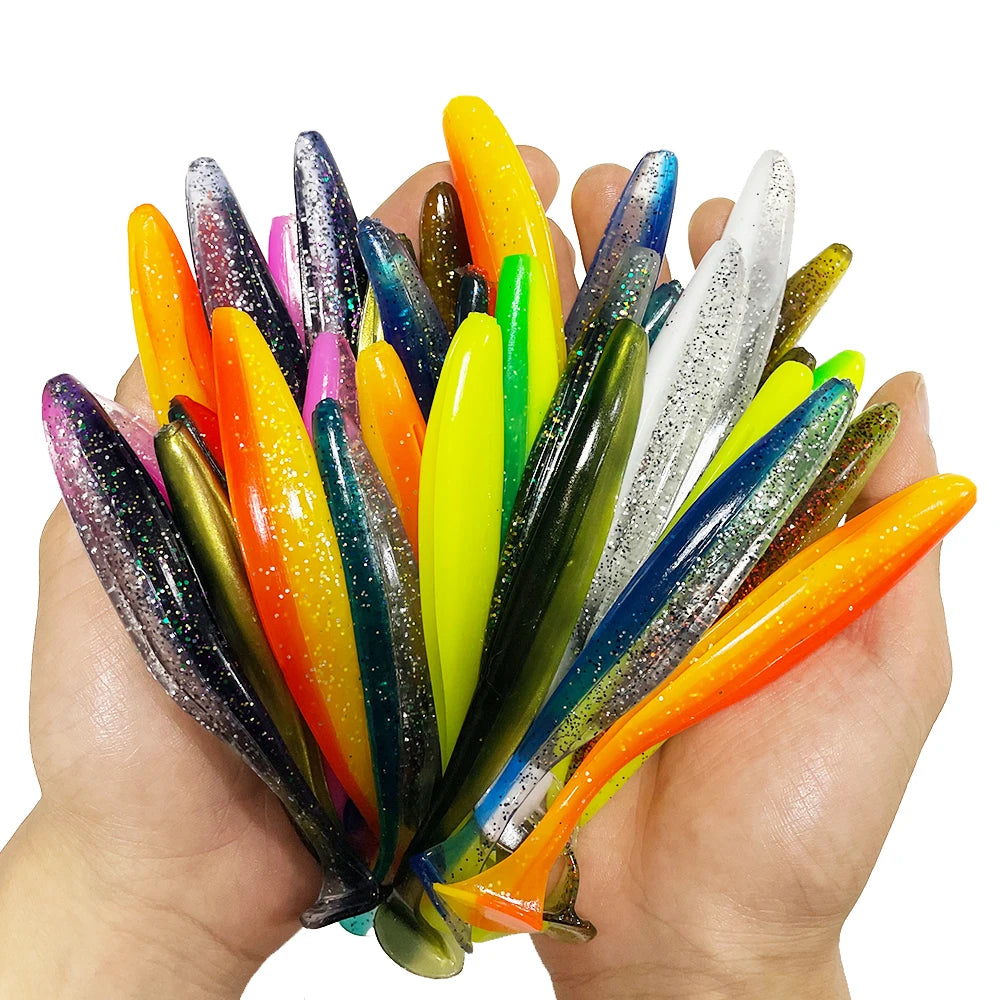1-100pcs T Tail 70mm 90mm 120mm Shad Worm Soft Bait Artificial Bait