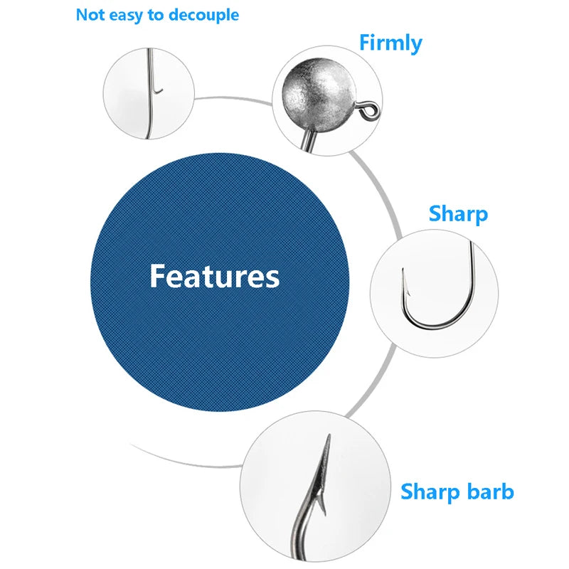10pcs/lot head jigs hook 1-20g All size Round Ball Jig Head Hook Weedless Lead Long Shank Jig Head For Soft Worm Fishing