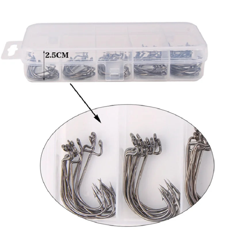 50pcs Crank Hook Set 8#-3/0 Fishing Hooks Saltwater Soft Worm Lure